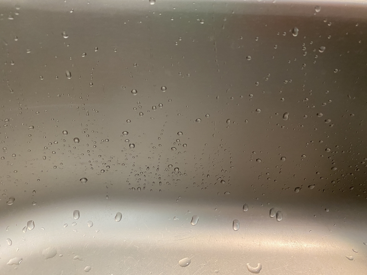 底面は頻繁に食器を置いたり泡が流れたりするので、撥水コートが落ちやすいのかもしれません。