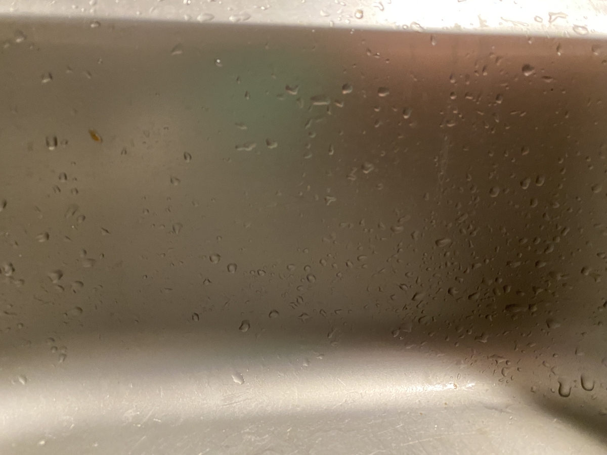 シンクの側面の撥水も落ちていました。水滴の付き具合に左右差はありません。