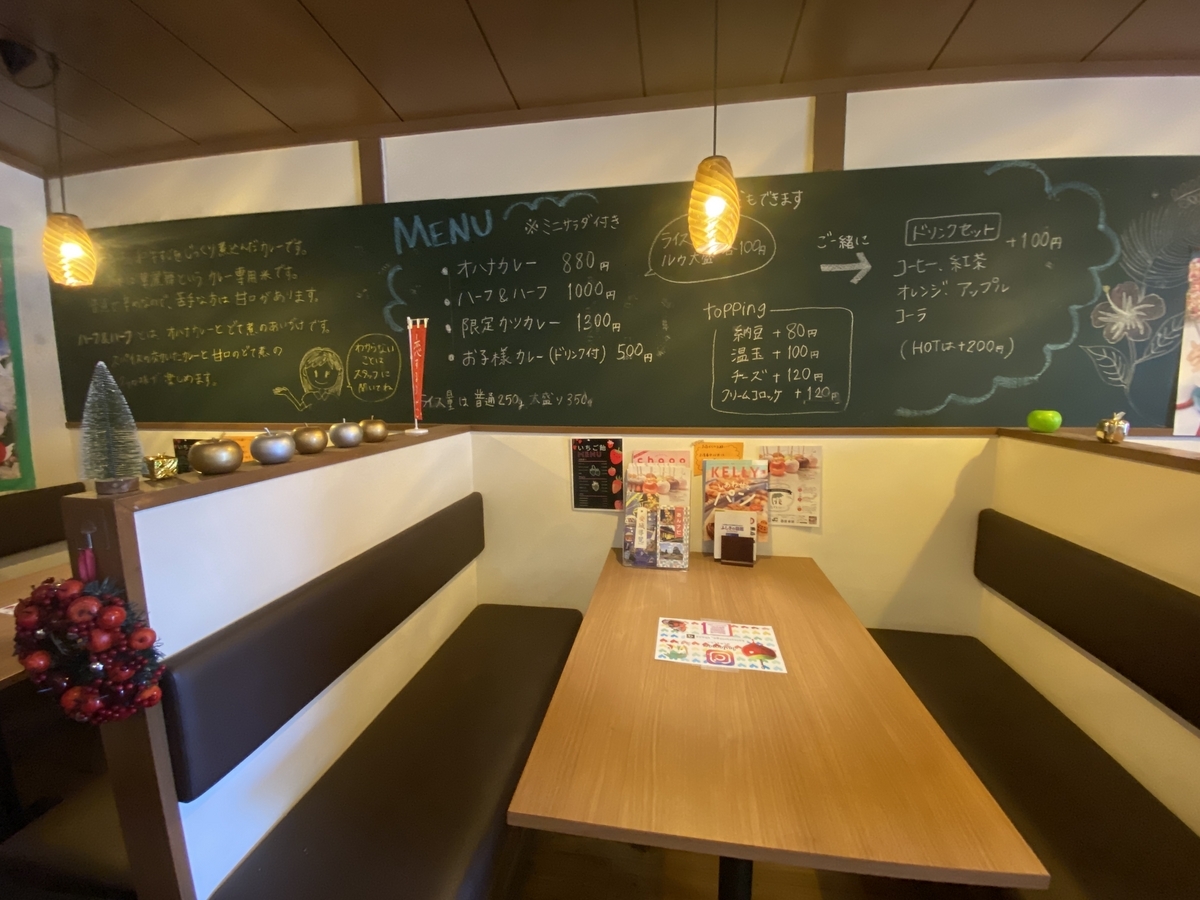カレー屋さんなので店内にはカレーのメニューが書かれています。